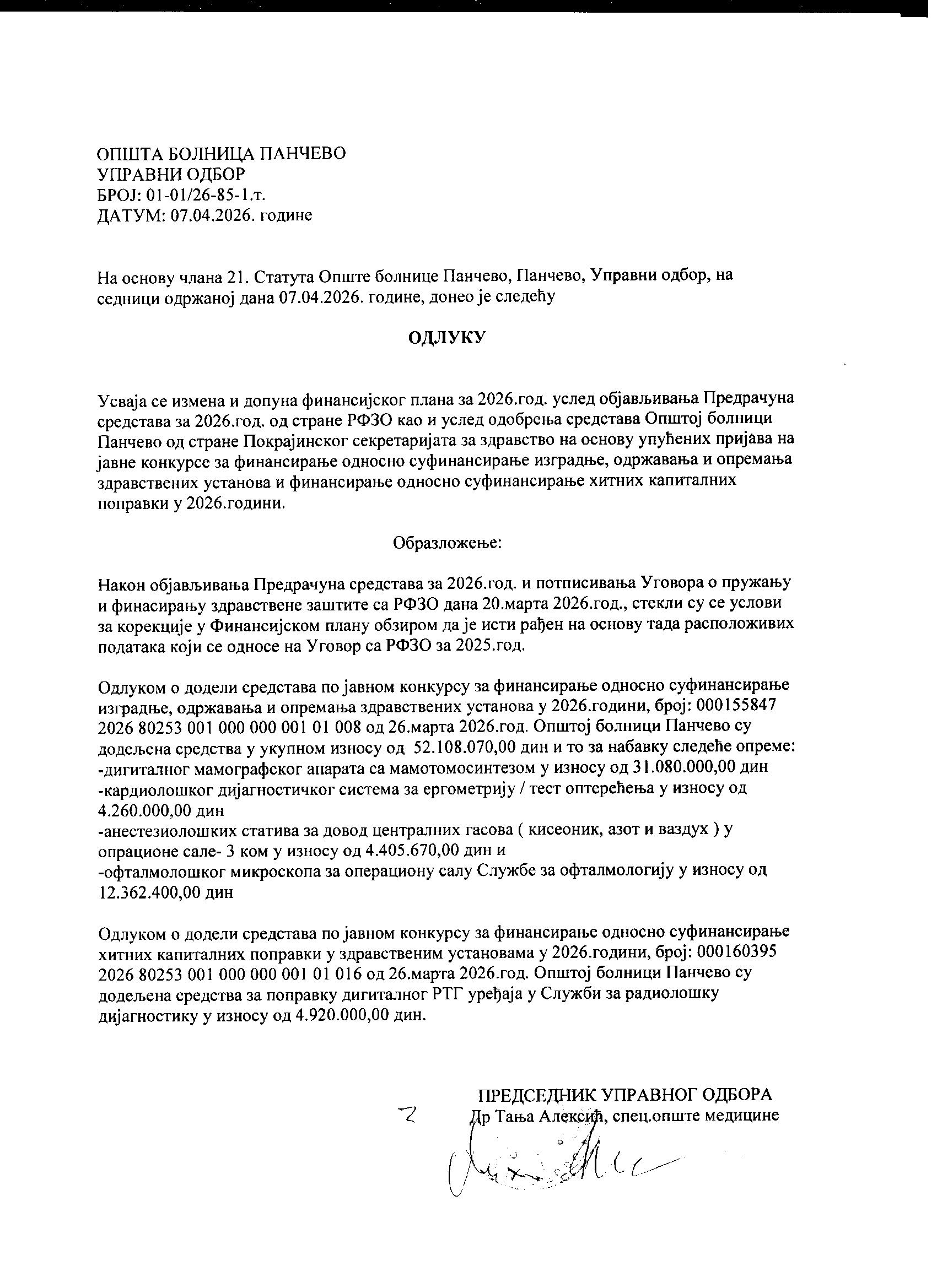Одлука УО- Измена и допуна финансијског плана 2026-07.04